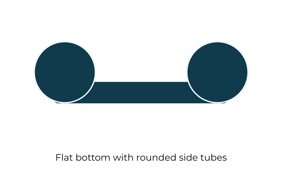 The first is a flat bottom with rounded side tubes. These are very common in inflatable kayaks. The wider footprint spreads your weight across the water, creating strong initial stability. This makes them feel steady when you first get in, which is why they’re popular with beginners. The trade-off is that they tend to be less efficient through the water.