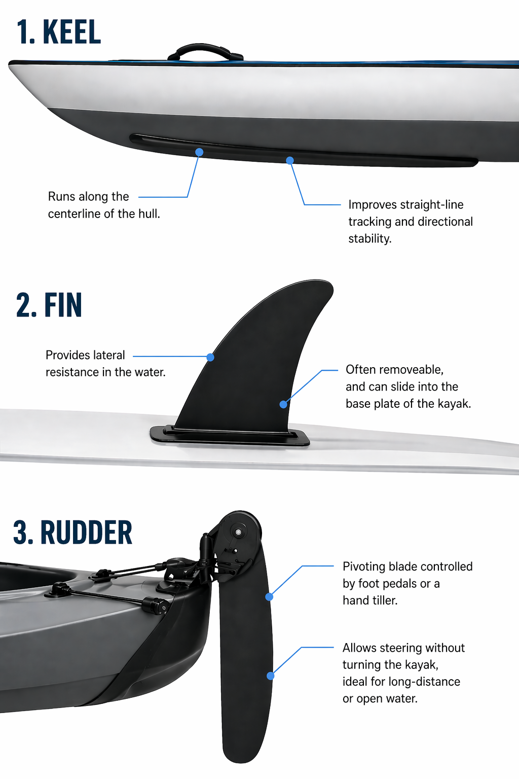 Even with thoughtful hull design, most kayaks benefit from features that help them maintain direction on the water. These are known as tracking aids.